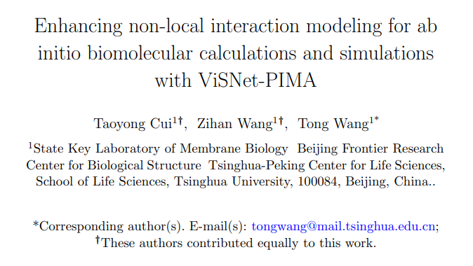 Enhancing non-local interaction modeling for ab initio biomolecular calculations and simulations with ViSNet-PIMA; Taoyong Cui, Zihan Wang, Tong Wang