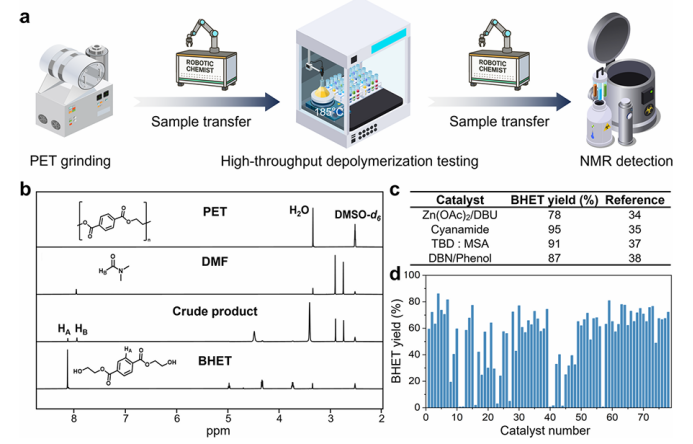 图2. 筛选流程、核磁定量和PET解聚催化剂的性能基线。