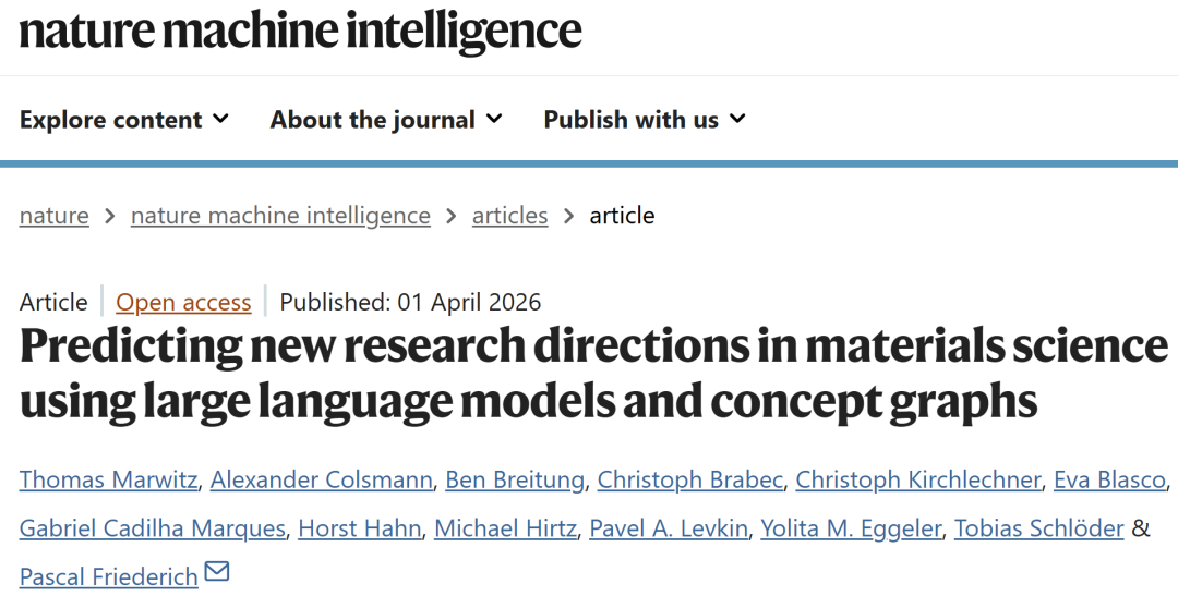 Marwitz, T., Colsmann, A., Breitung, B. et al. Predicting new research directions in materials science using large language models and concept graphs. Nat Mach Intell (2026).