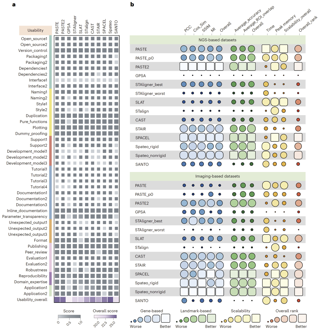 研究人员进一步从整体角度评估方法性能,包括不同数据类型下的表现以及工具的可用性。