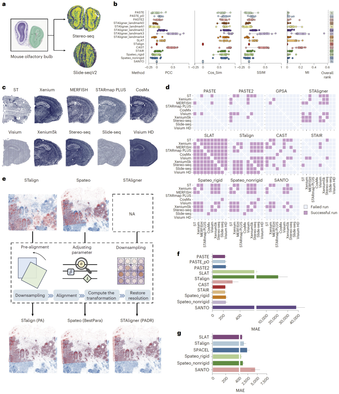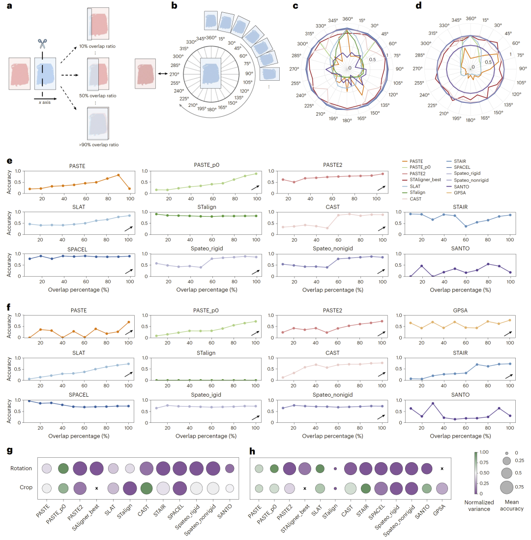 本研究系统评估了空间转录组数据对齐方法的性能,并揭示了不同方法在多种场景下的优势与局限。研究结果表明,尽管已有方法在常规任务中表现良好,但在复杂真实应用中仍面临诸多挑战,例如鲁棒性不足和计算成本过高。