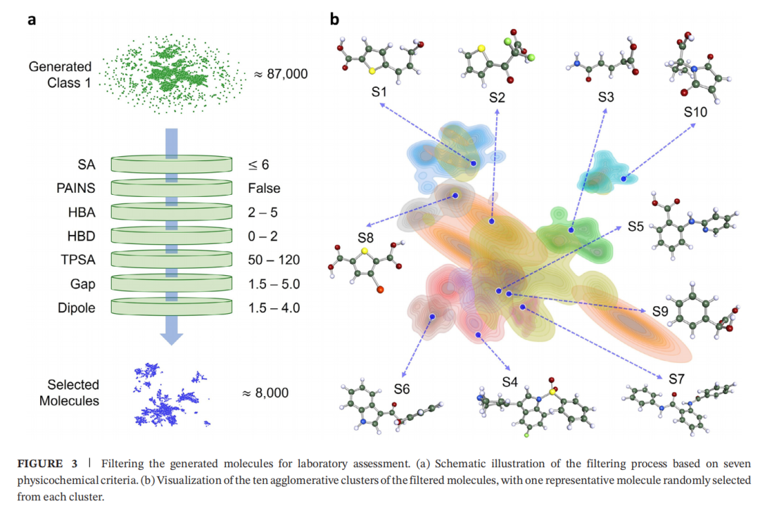 过滤后保留约 8000 个候选分子(<10%)。