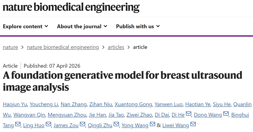 Yu, H., Li, Y., Zhang, N. et al. A foundation generative model for breast ultrasound image analysis. Nat. Biomed. Eng (2026).