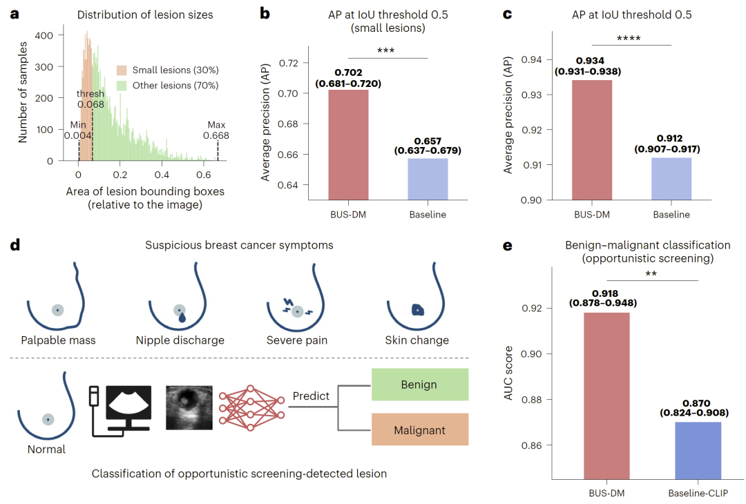 在筛查任务中,BUSGen显著提升了对小病灶的检测能力。由于小病灶通常难以被发现,这一能力对于早期筛查尤为关键。
