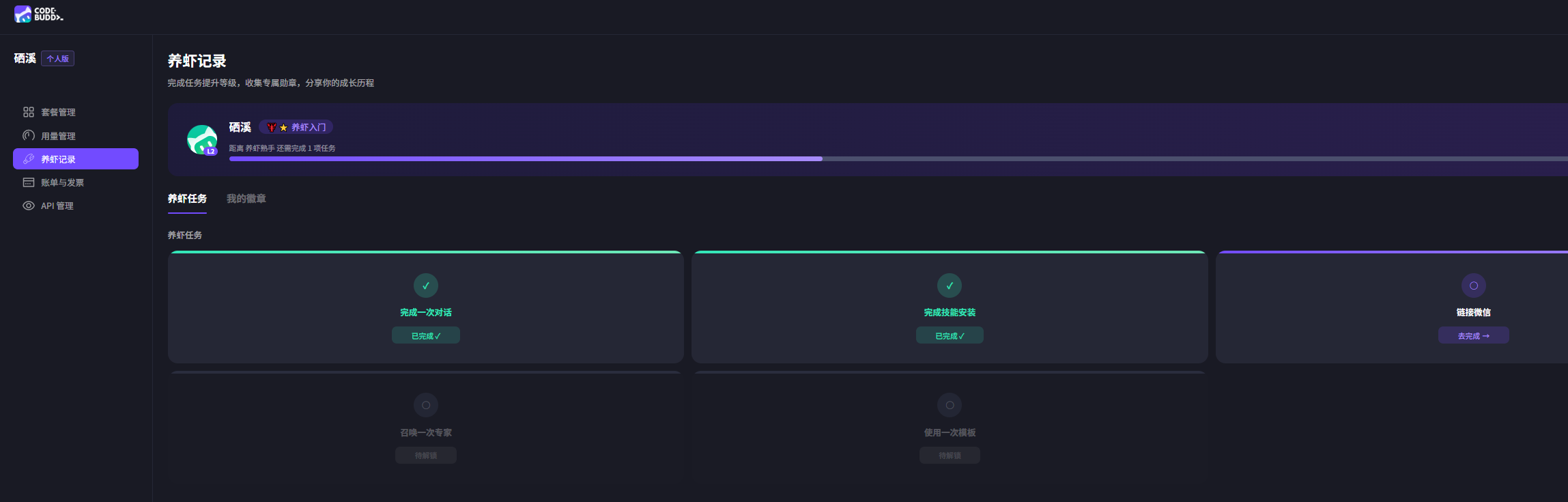 workbuddy中微信已经绑定,但是一直显示未解锁。同样召唤专家完成显示也未解锁。