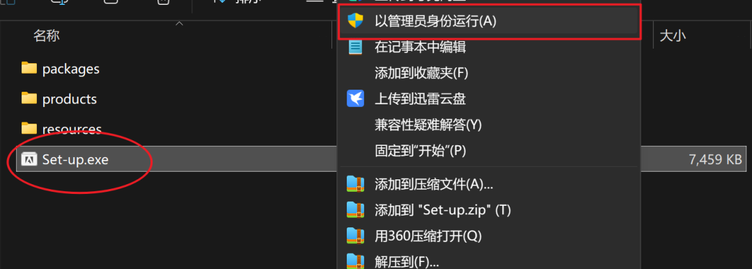 3.鼠标选中"Set-up.exe",右键点击"以管理员身份运行"