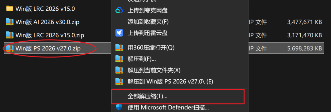 1.下载安装包后,选中安装包右键点击全部解压