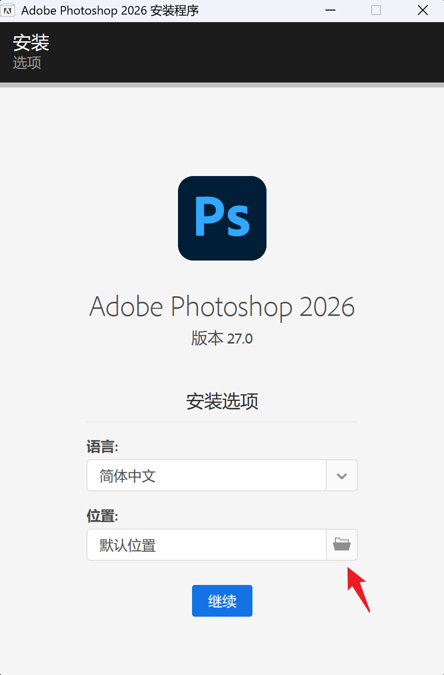 4.调整安装目录,然后点击 “继续”