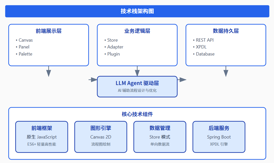 后端服务 | Java Spring Boot | 兼容现有 XPDL 引擎 |