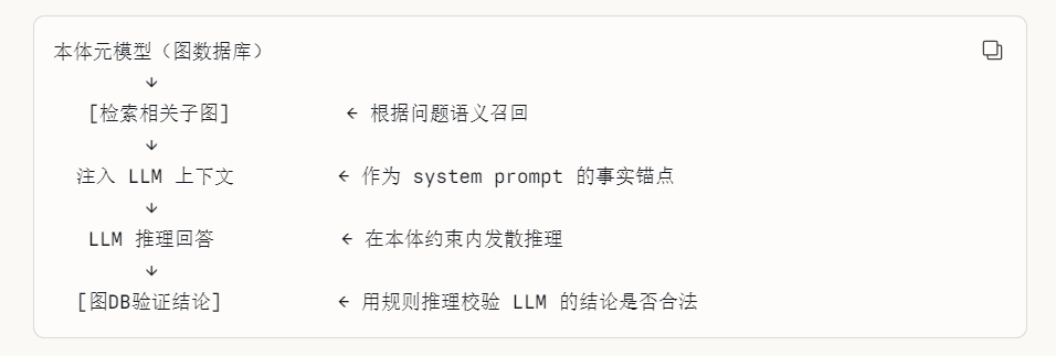 你的本体越完整,大模型的幻觉风险就越低——因为它有了可以对照的"事实基准"。这正是你投入本体建模的真正回报。