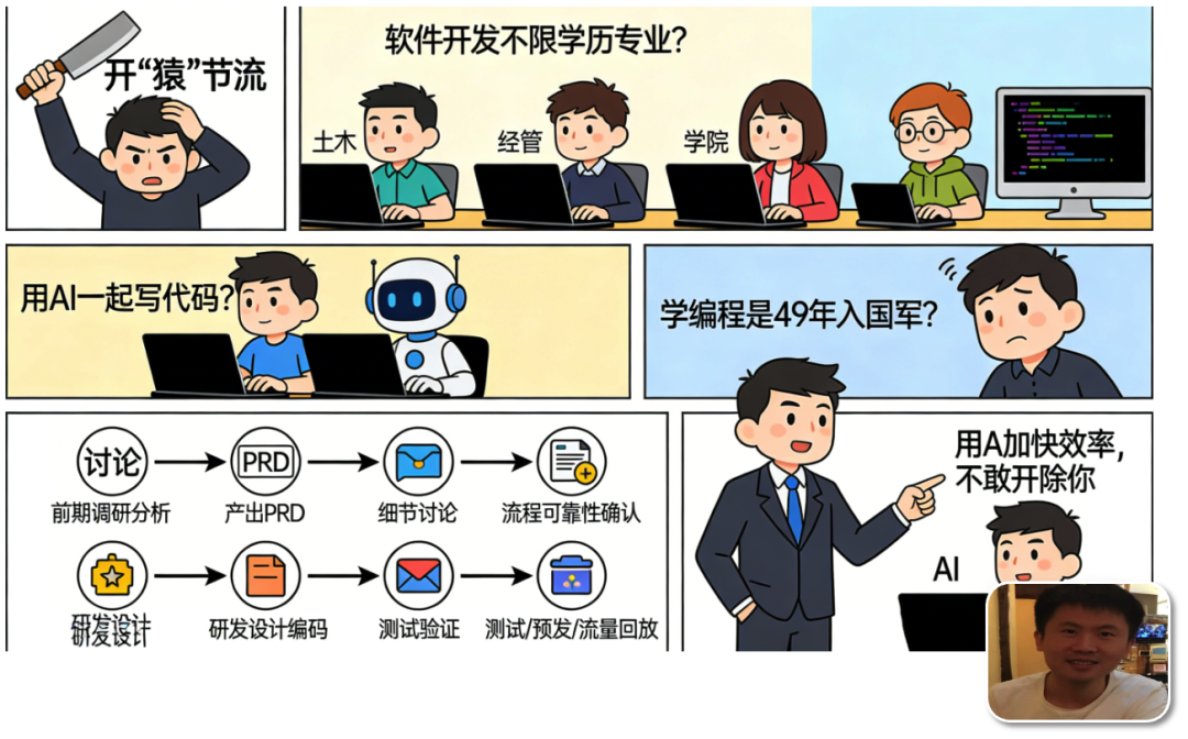 他们刻意在描述上降低了软件交付的复杂度,并把 AI 编码等同于软件交付,等价于程序员👨🏻💻的工作就只是写代码。从而忽视了,一个复杂项目需求,在前期的调研、讨论、分析,产出 PRD 文档,在进行细节的讨论,确保流程的可靠行。最后才是研发设计和编码实现,以及测试验证、预发验证、流量回放等,这才是一整个需求交付的过程。编码,只是其中的一小部分而已。
