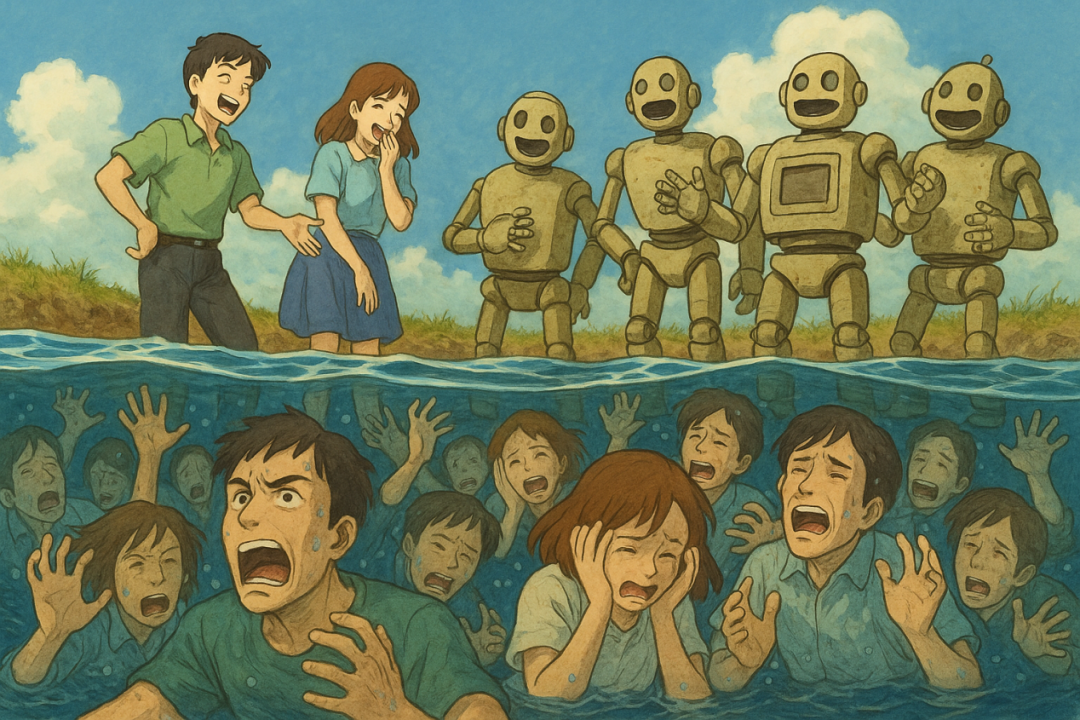 “水面上,几个人带着一堆AI在大笑。水面下,被淹没的人群只剩下徒劳的挣扎。