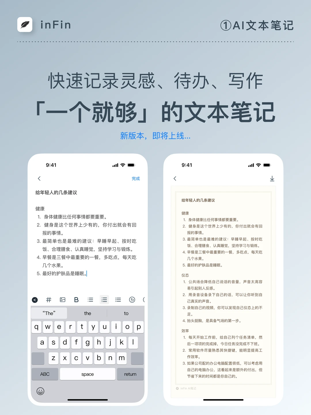 App Store 搜索: inFin AI 笔记