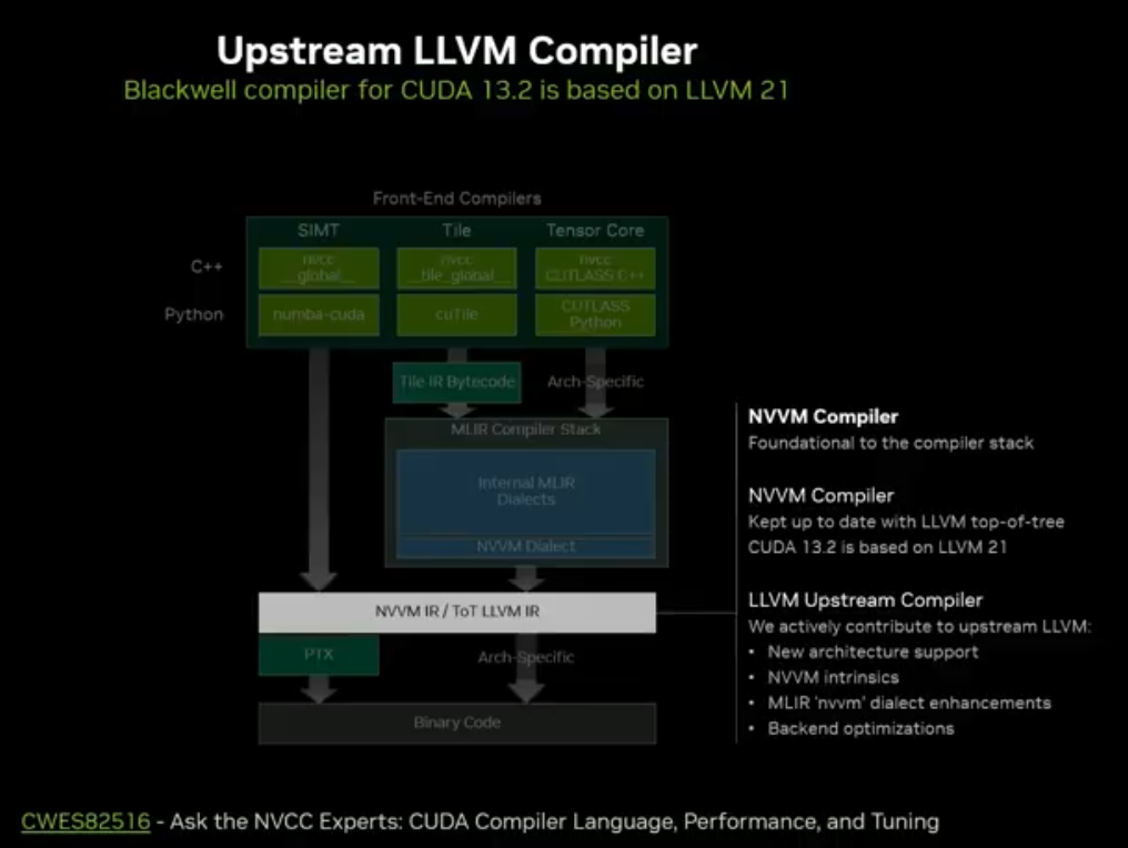 NVVM 向上游合并至 LLVM,CUDA 13.2 开始 Blackwell 编译器接入 LLVM 21