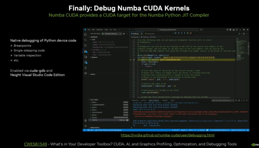 支持 Python 核函数调试、Nsight profiling,补齐 Python 并行开发工具短板。