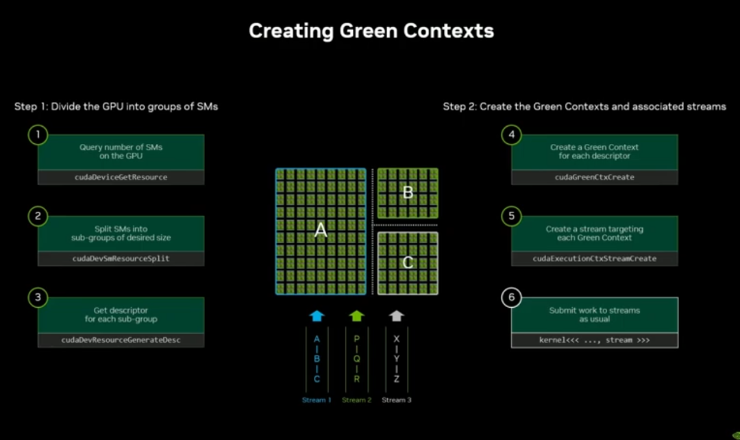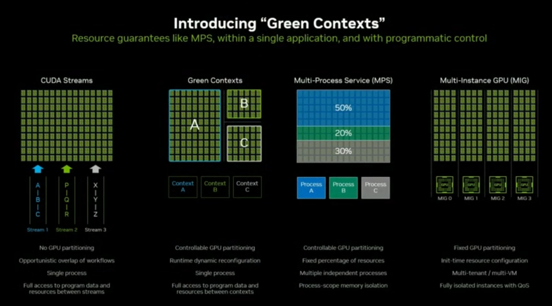 要在单卡上实现精细化非对称调度,NVIDIA 推出了Green Contexts。