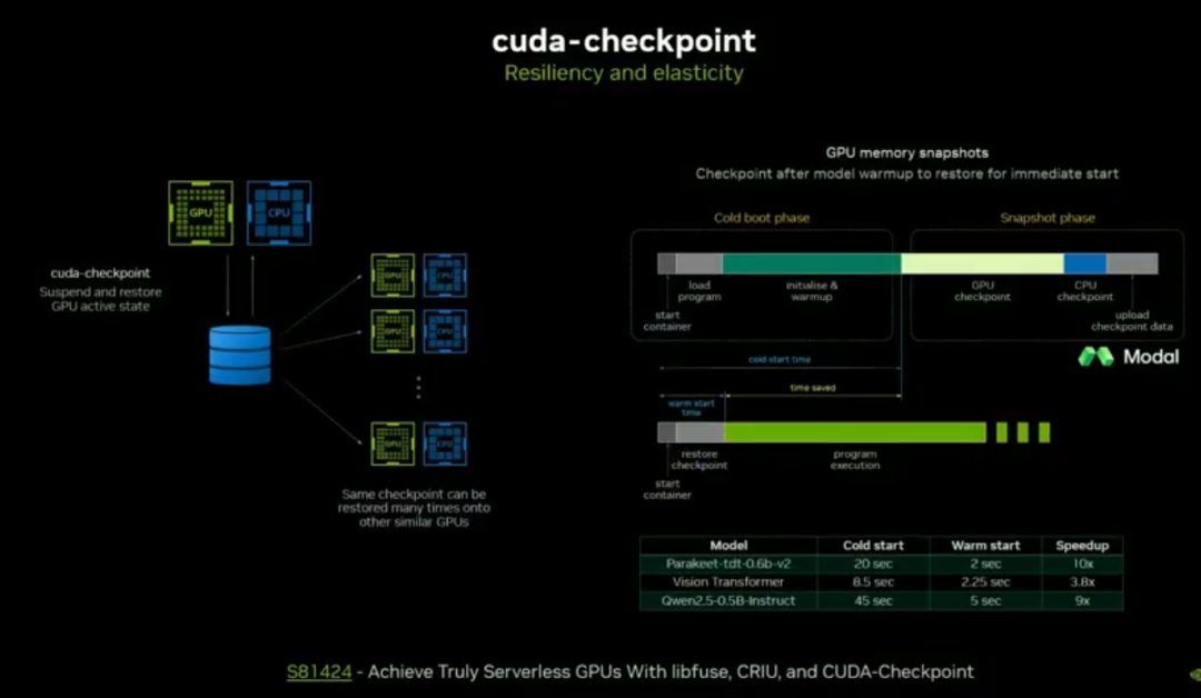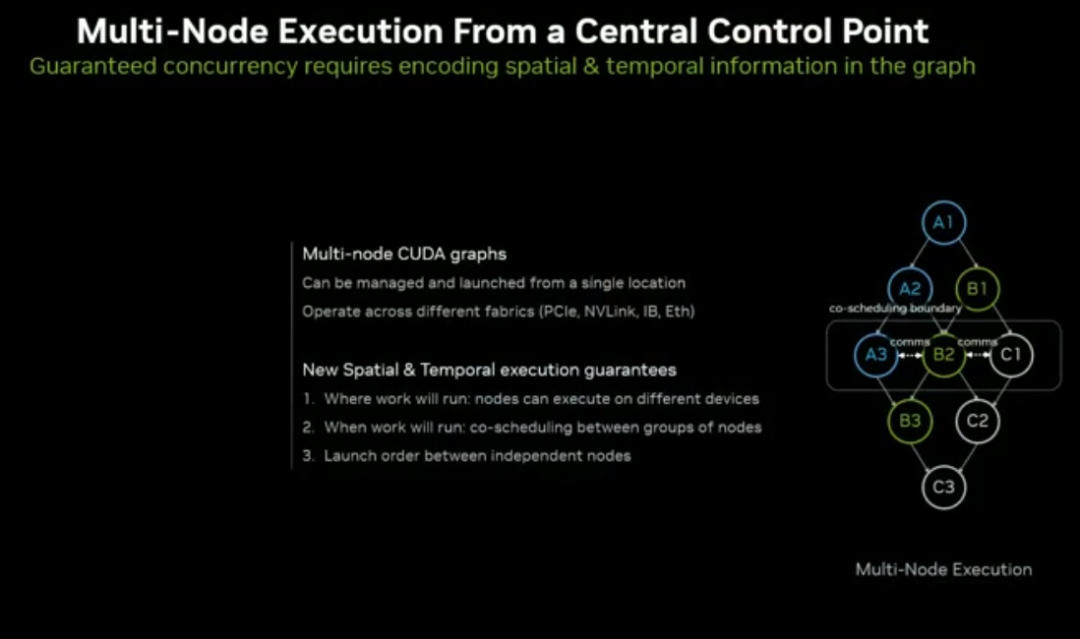 多节点 CUDA Graph:单点启动、跨全数据中心 GPU 执行,支持任务强依赖约束,把机会主义并发变为确定性并发。