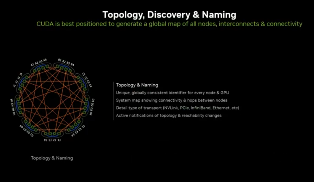 统一命名与拓扑:集群内所有节点、GPU 保持一致标识,避免大规模系统调度冲突。