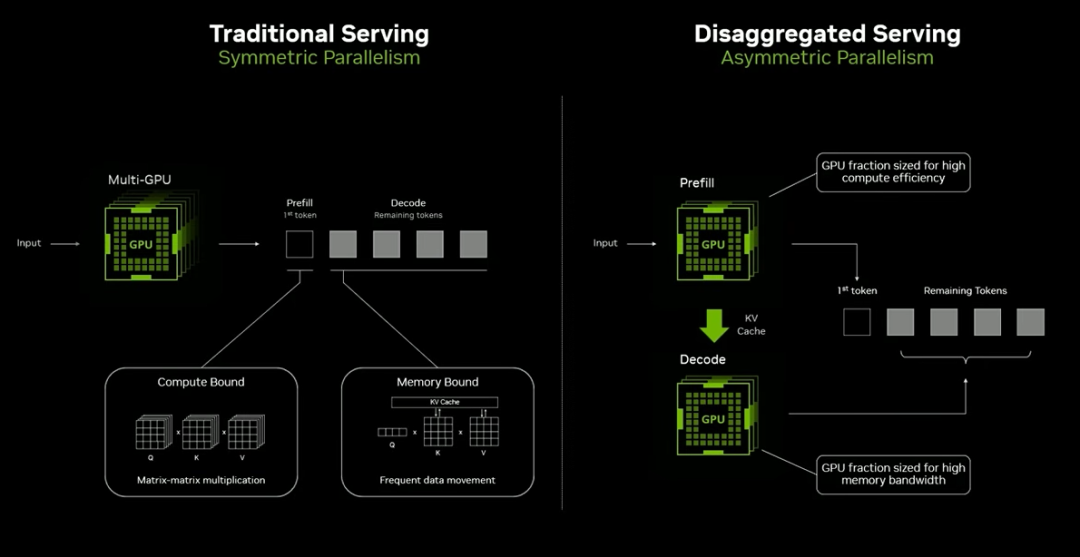 以 AI 推理为例,Prefill 阶段是计算密集型,需要大量算力;Decode 阶段是访存密集型,需要高带宽。