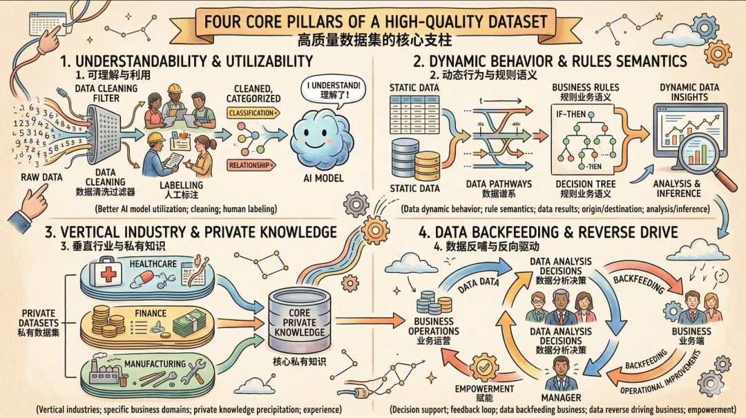 只有当数据集包含了这些“来龙去脉”、“行为规则”和“业务语义”后,它就不再是冰冷的数字,而是一个有血有肉、能被理解和推理的知识体系。这就是高质量数据集的第一个关键特征。