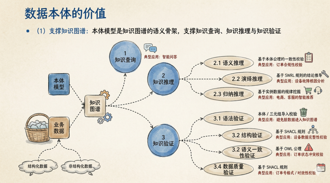 打个比方,知识图谱就像一张已经画好的地图,上面标注了各种地点和路线。而本体模型,则相当于这张地图的“制图标准”——它定义了什么是“城市”、什么是“道路”、什么是“河流”,它们之间是什么关系。先有模型的抽象,然后才有数据的泛化实例。