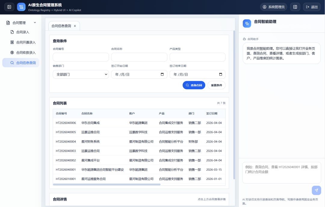 前面已经谈到AI大模型基于本体模型+UI规范+技术架构已经完整的可以输出整个完整的合同管理应用。但是实际我做了如下优化。