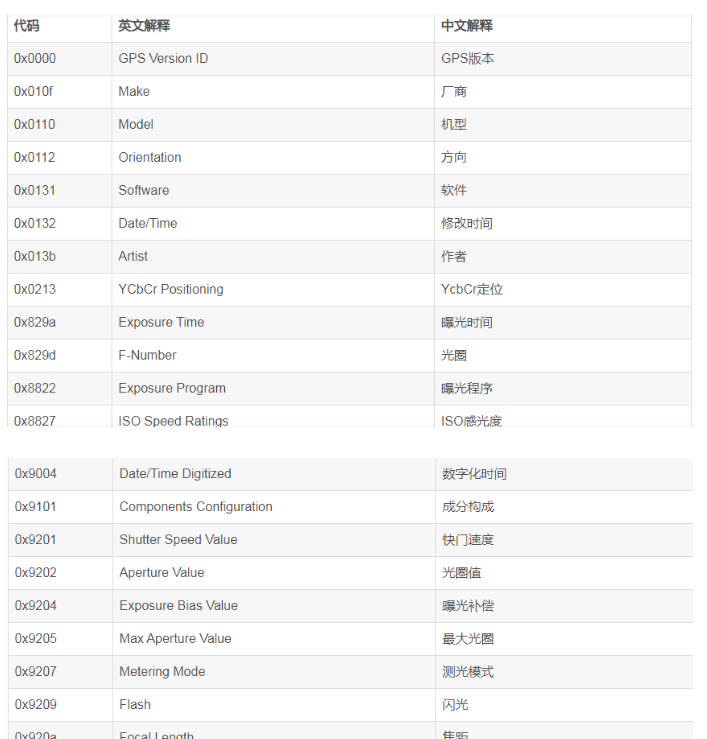 可交换图像文件(Exchangeable Image File,Exif)信息图像在拍摄时保留的相关参数:比如图像信息(厂商,分辨率等),相机拍摄记录(ISO,白平衡,饱和度,锐度等),缩略图(缩略图宽度,高度等),GPS(拍摄时的经度,纬度,高度)等,按照图像文件标准存储在图像头文件。一般使用支持图像读取的软件即可查看部分参数,但是图像如果修改,Exif信息可能丢失。