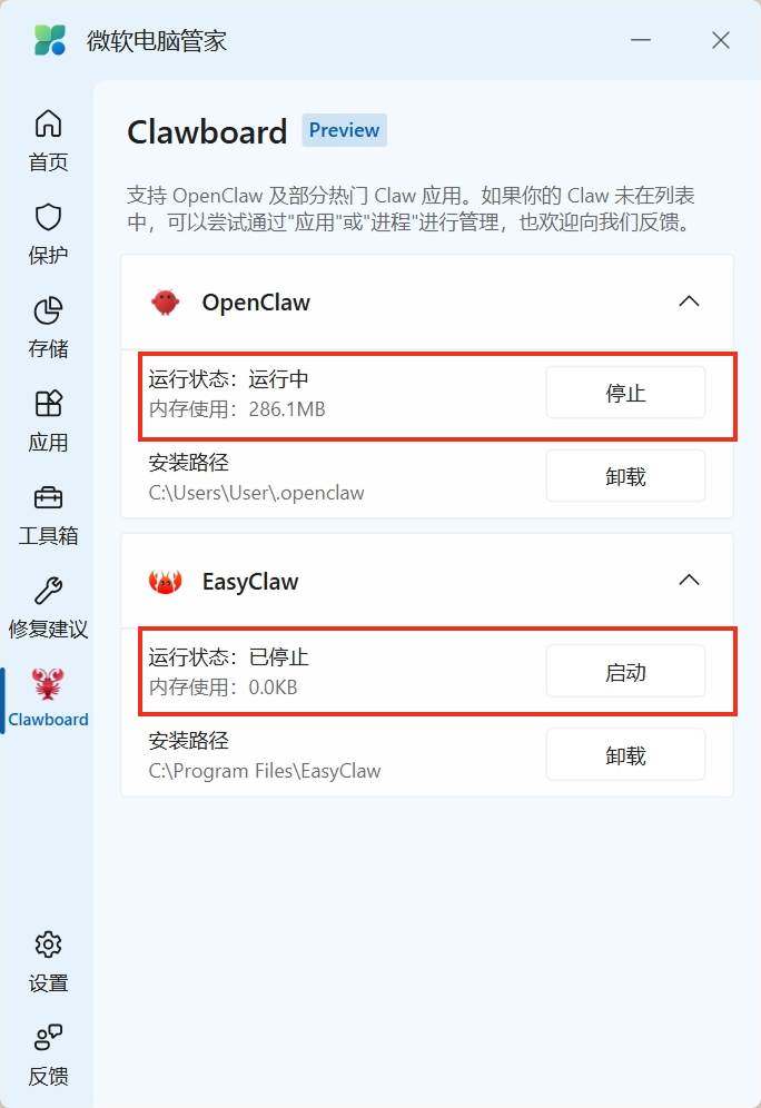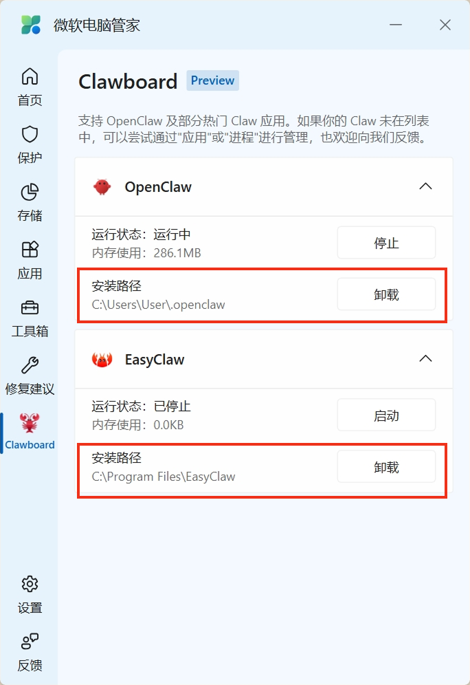 我们常常说要安装小龙虾,管家必定不走寻常路,这不就出来卸载功能了。