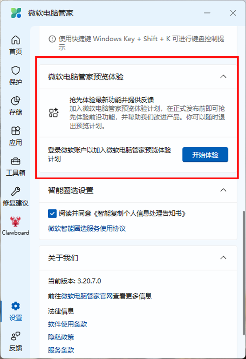 需要注意的是:使用前请将 微软电脑管家 更新至 3.20.7.0 及以上版本,低眰本肯定是没有了。