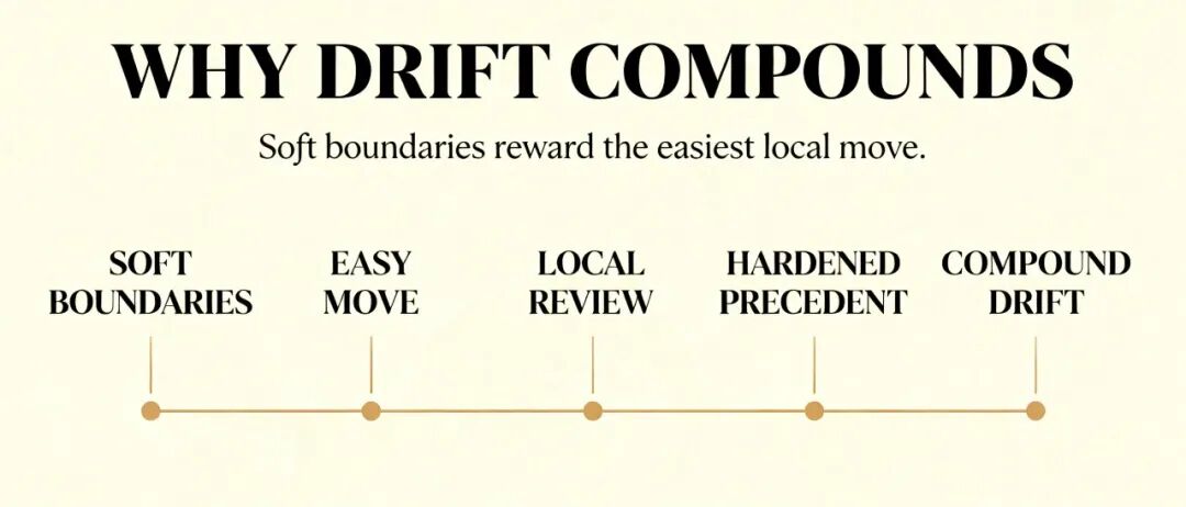 把这些因素串起来,就能看到一种在vibe coding场景下的工程因果链:边界没有冻结,agent 就会沿最省力的路径继续扩展。这些扩展因为局部可用而通过评审;通过评审的局部扩展又会反过来成为下一轮实现的默认先例;随着先例增多,系统越来越难区分 canonical host 和兼容宿主,最后连“这段逻辑到底算不算越层”都开始变得含糊了。 这也是为什么 vibe coding 环境下的架构漂移往往不是突发失控,而是一种越来越平滑、越来越难在早期被叫停的偏差累积过程。