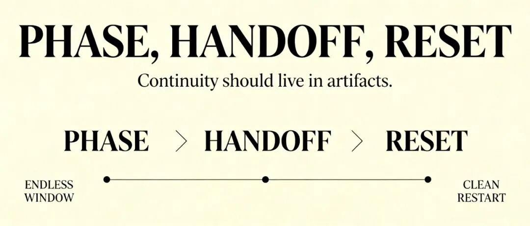 在这套方法里,还有一个在老项目阶段性治理中非常有效的实践:session handoff 不是一个文书动作,而是一种长程 harness primitive。 特别是在重构、治理、架构收口问题很多的老项目里,把工作切成阶段,每一阶段结束时强制产出 handoff,再在新窗口继续下一阶段,乍看上去会增加窗口数和交接成本,但实际效果往往恰恰相反。因为 handoff 会迫使团队把当前阶段已经确认的 authority boundary、已退役的路径、仍受控的过渡态、下一步的真正目标和禁止重开的议题写成显式工件。这个过程会显著降低下一轮实现继续沿着旧偏差扩张的概率。
