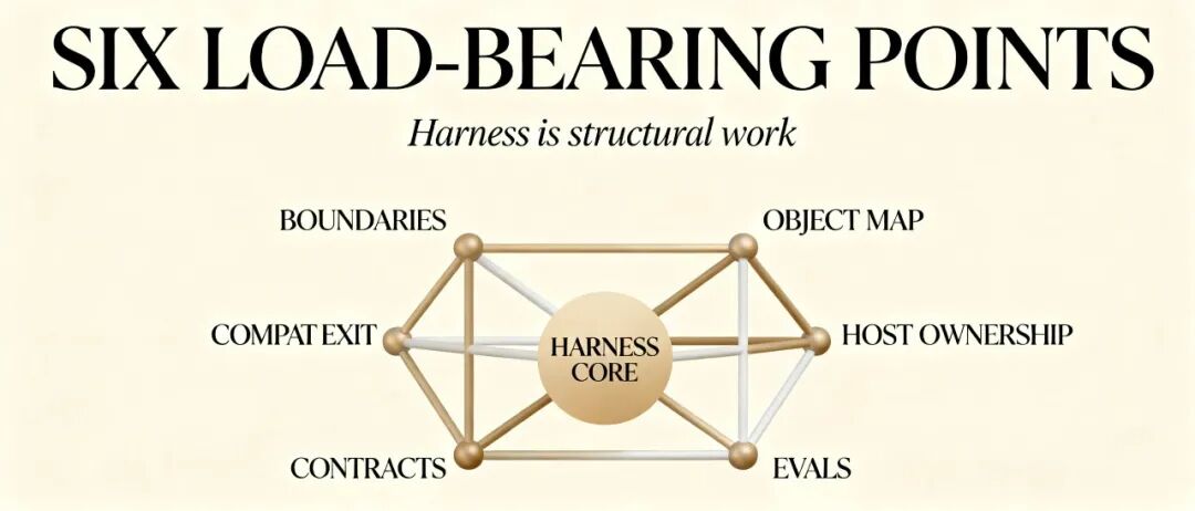 这里也要避免把 harness 理解成“一次性全量建设一整套大平台”。对窄任务、短流程、低状态耦合的场景,这六个层面可以很轻,甚至有些只需要以明确约定和少量测试的形式存在;并不是所有团队都要立刻把它们产品化成显眼的基础设施。harness 真正变成承重结构,通常发生在系统已经开始出现多阶段边界、多类 consumer、可恢复执行、长期兼容债务和回归治理压力的时候。之所以把六个层面完整展开,不是因为它们在任何项目里都必须一样重,而是因为在这个案例里,它们已经全部变成了 load-bearing 问题。