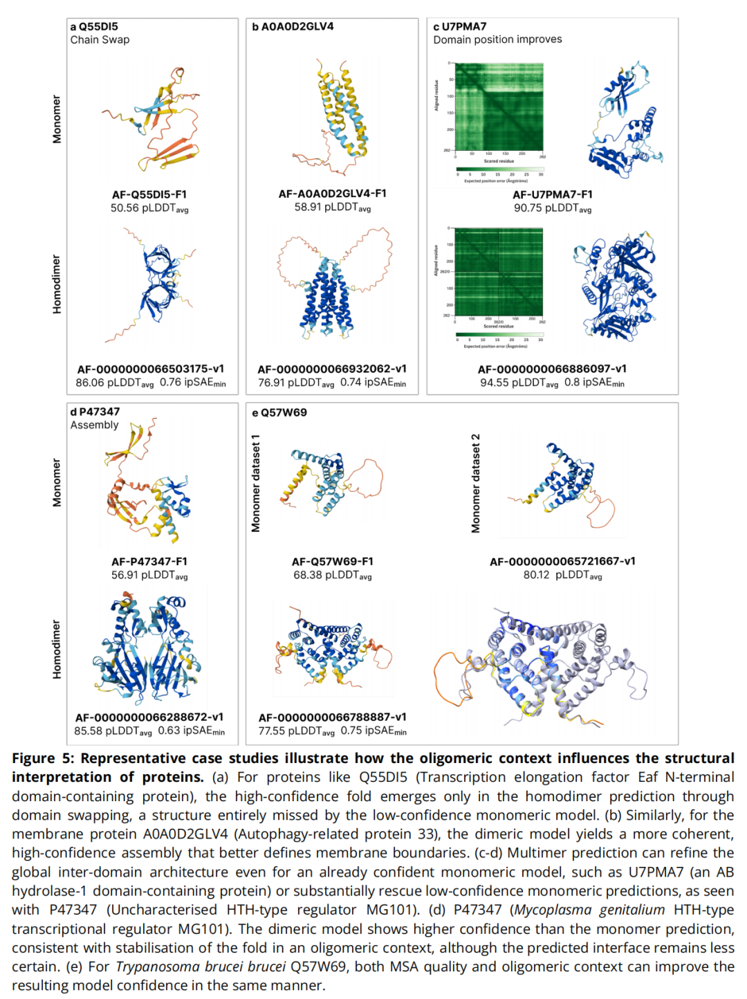 意义: 单体预测不仅低估,甚至可能给出根本错误的结构图像;结构域互换类折叠必须在复合物语境中才能被正确识别。