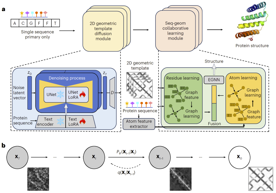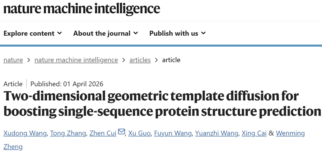 Wang, X., Zhang, T., Cui, Z. et al. Two-dimensional geometric template diffusion for boosting single-sequence protein structure prediction. Nat Mach Intell (2026).