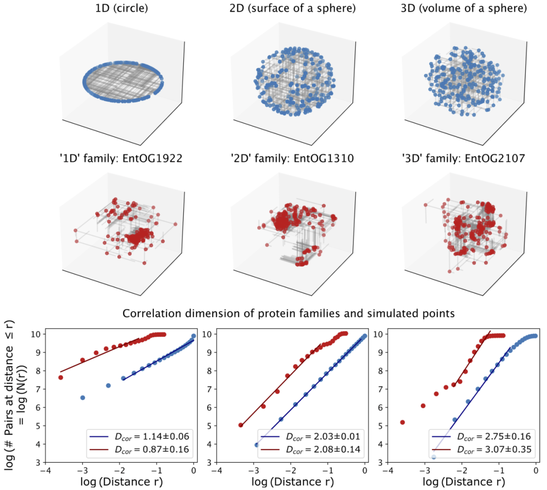 图2: 点集与蛋白序列的相关维度分析。