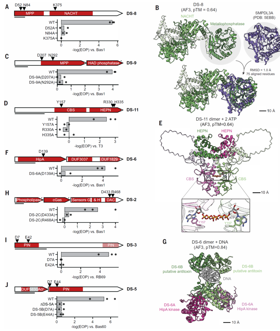 图5:新验证的防御相关结构域在抗噬菌体过程中具有关键作用。