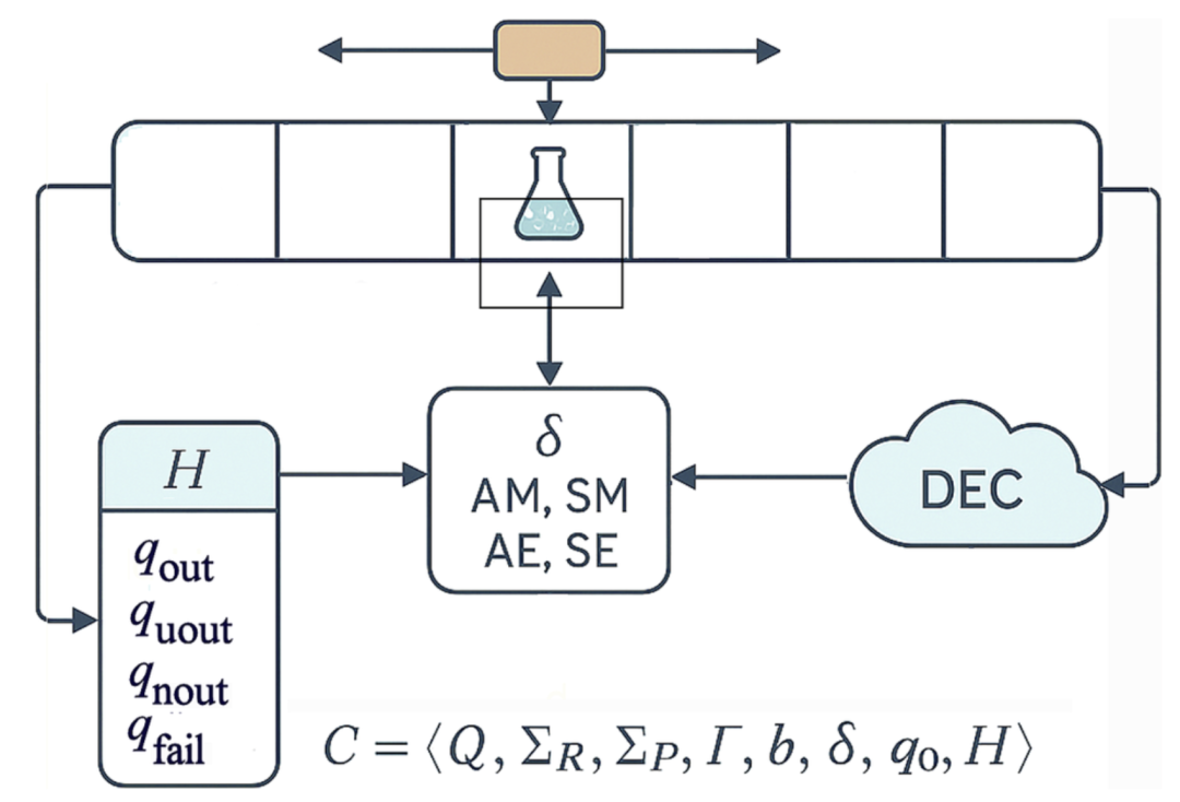 研究人员提出“化学合成图灵机”作为理论基础,将化学过程形式化为一种状态机。该系统由一系列“容器”(类似图灵机中的带)构成,每个容器可以执行四种基本操作:加入物质、移除物质、输入能量和移除能量。