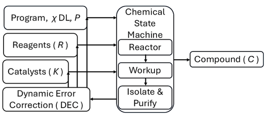 这一抽象模型使得所有化学反应都可以被统一表示为状态转换过程,从而实现可编程化。