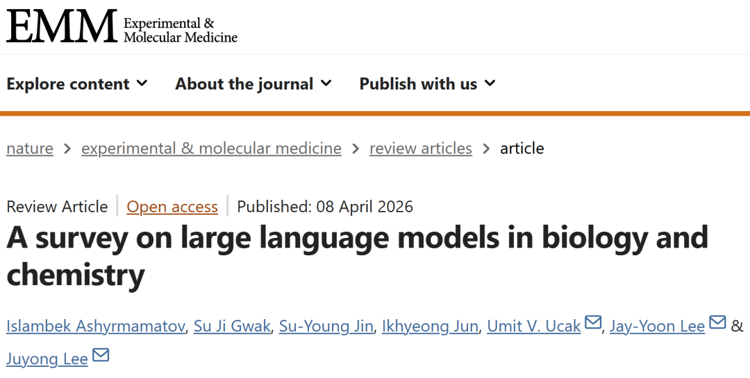 Ashyrmamatov, I., Gwak, S.J., Jin, SY. et al. A survey on large language models in biology and chemistry. Exp Mol Med (2026).