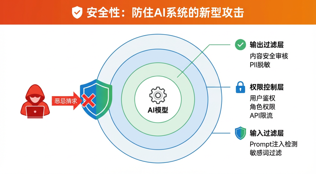 AI 系统引入了传统系统没有的新型安全风险。最典型的是 Prompt 注入攻击——攻击者通过精心构造的输入,让 AI 忽略你的系统提示,执行恶意指令。