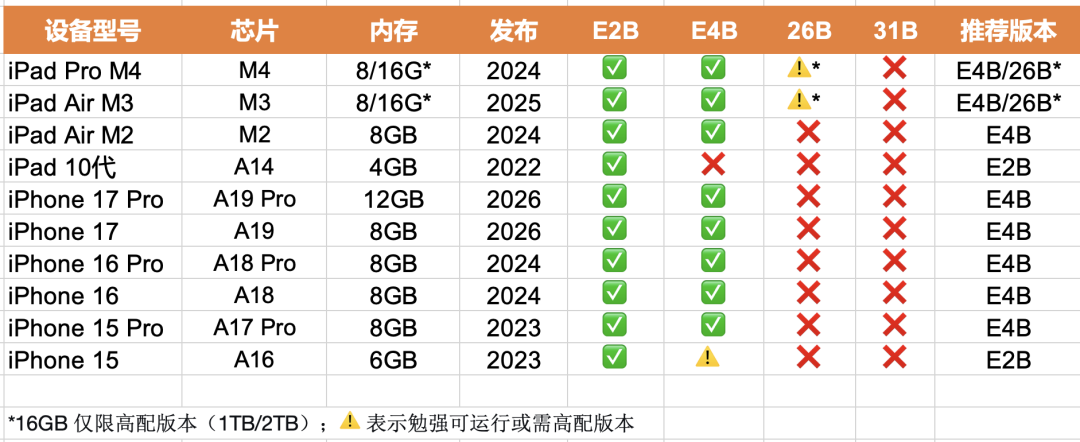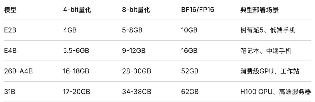 选型原则:16GB 内存的设备,运行 E2B 或 E4B 绰绰有余;26B 版本勉强能跑但会有内存压力;31B 版本不要尝试。