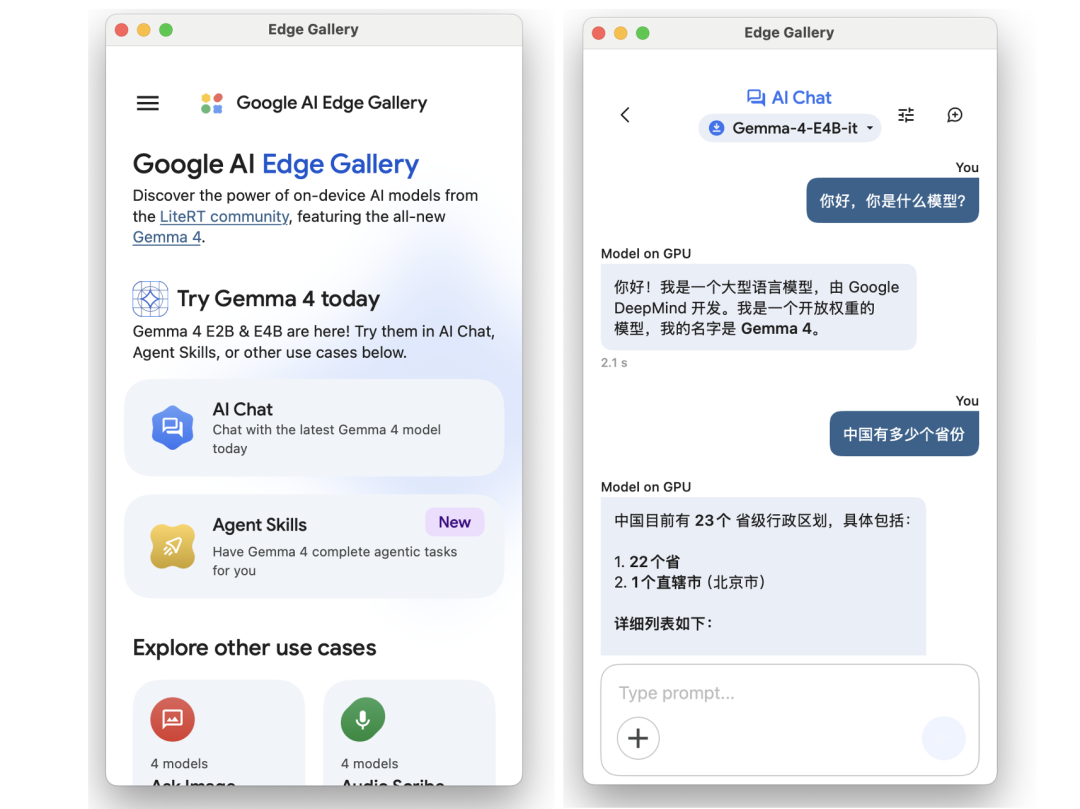 AI Edge Gallery 并不只是一个简单的聊天框,它提供了几项值得关注的能力: