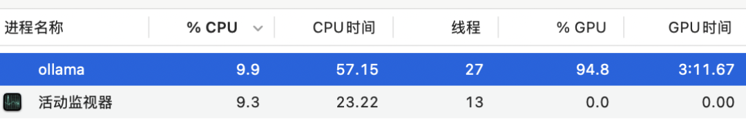 其中 “14%/86% CPU/GPU” 表示模型正在 CPU 与 GPU 之间协同计算:这是 M4 统一内存架构的优势直接体现。