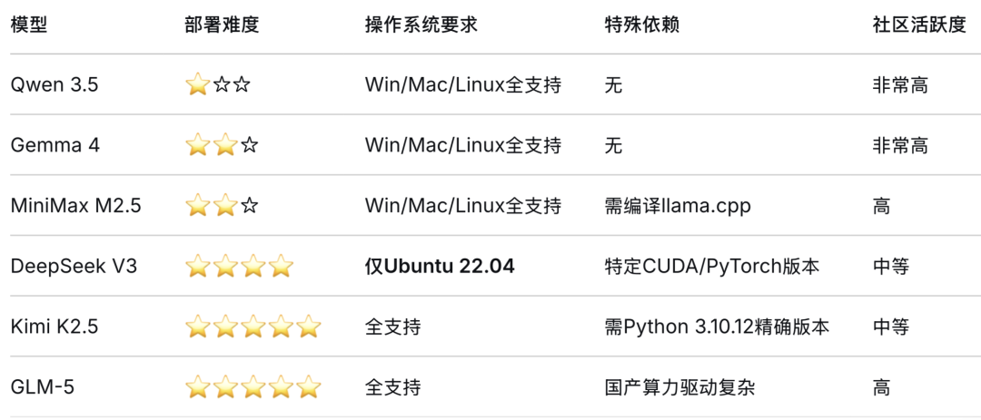 从“好养活”到“难伺候”:Qwen 3.5 如猫,门槛极低;Gemma 4 如狗,生态友好;DeepSeek V3 如马,环境苛刻;Kimi 与 GLM-5 如大象,非大厂莫属。选模型前,先掂量自己的“饲养”能力。