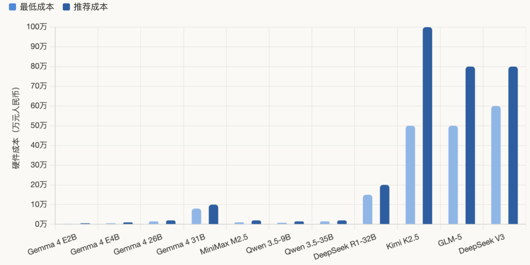 但如果放眼所有预算范围,从几百元的树莓派到十万元的服务器,谷歌 Gemma 4 系列才是当之无愧的全能性价比之王。它通过 E2B、E4B、26B、31B 四个版本,在每个价位段都提供了‘越级’的性能表现,真正实现了‘丰俭由人,总有一款适合你’。”