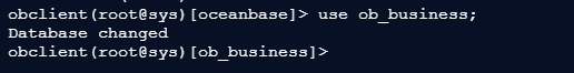 切换成功后,终端会显示 obclient [ob_business]> ,表示已进入该数据库,可正常执行后续操作。