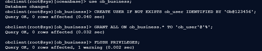 CREATE USER IF NOT EXISTS ob_user IDENTIFIED BY 'Ob@123456';