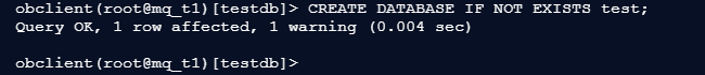 延续上一篇的操作,我们先登录之前创建的mq_t1租户(如果已退出,重新执行登录命令),这是创建数据库的前提: