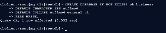 -- 创建名为ob_business的数据库,指定字符集为utf8mb4,读写属性为可读写