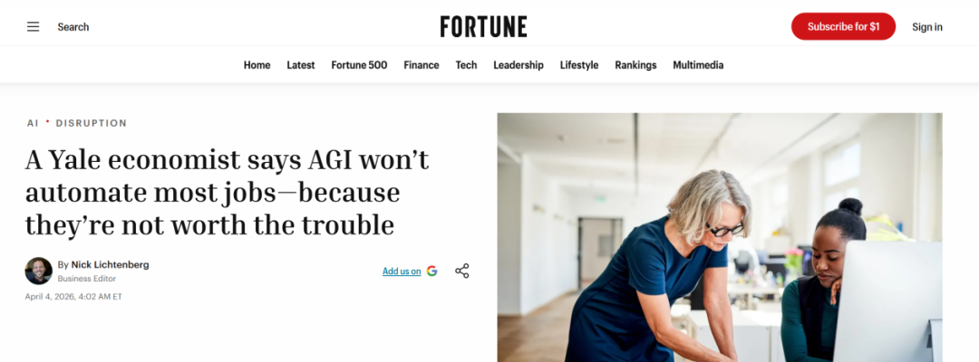 4月4日,耶鲁大学经济学副教授雷斯特雷波发布的一篇论文,直接推翻了这种普遍担忧——他说,AGI不会取代大多数人类工作,但原因不是AI能力不够,而是很多工作“不值得被替代”。